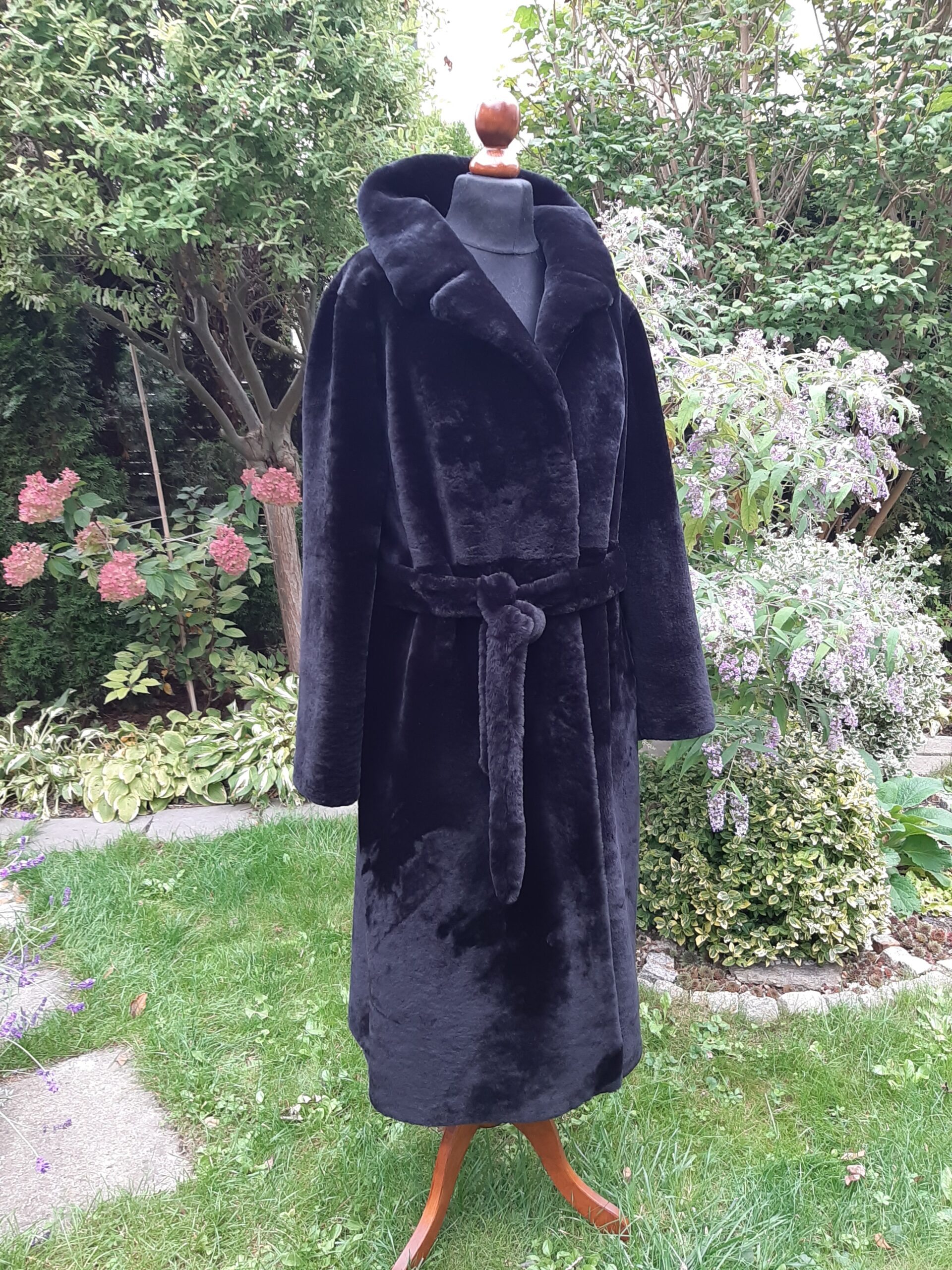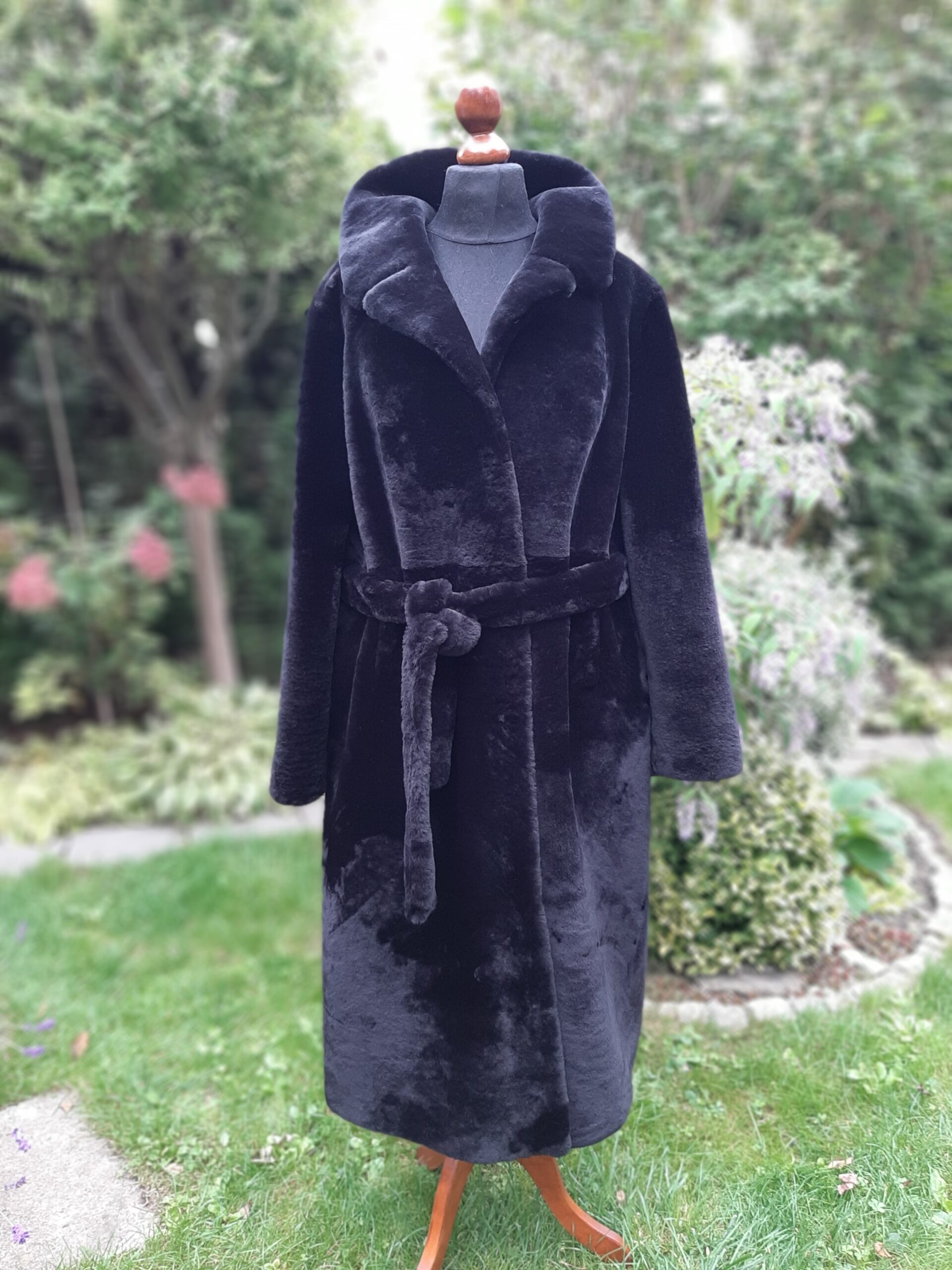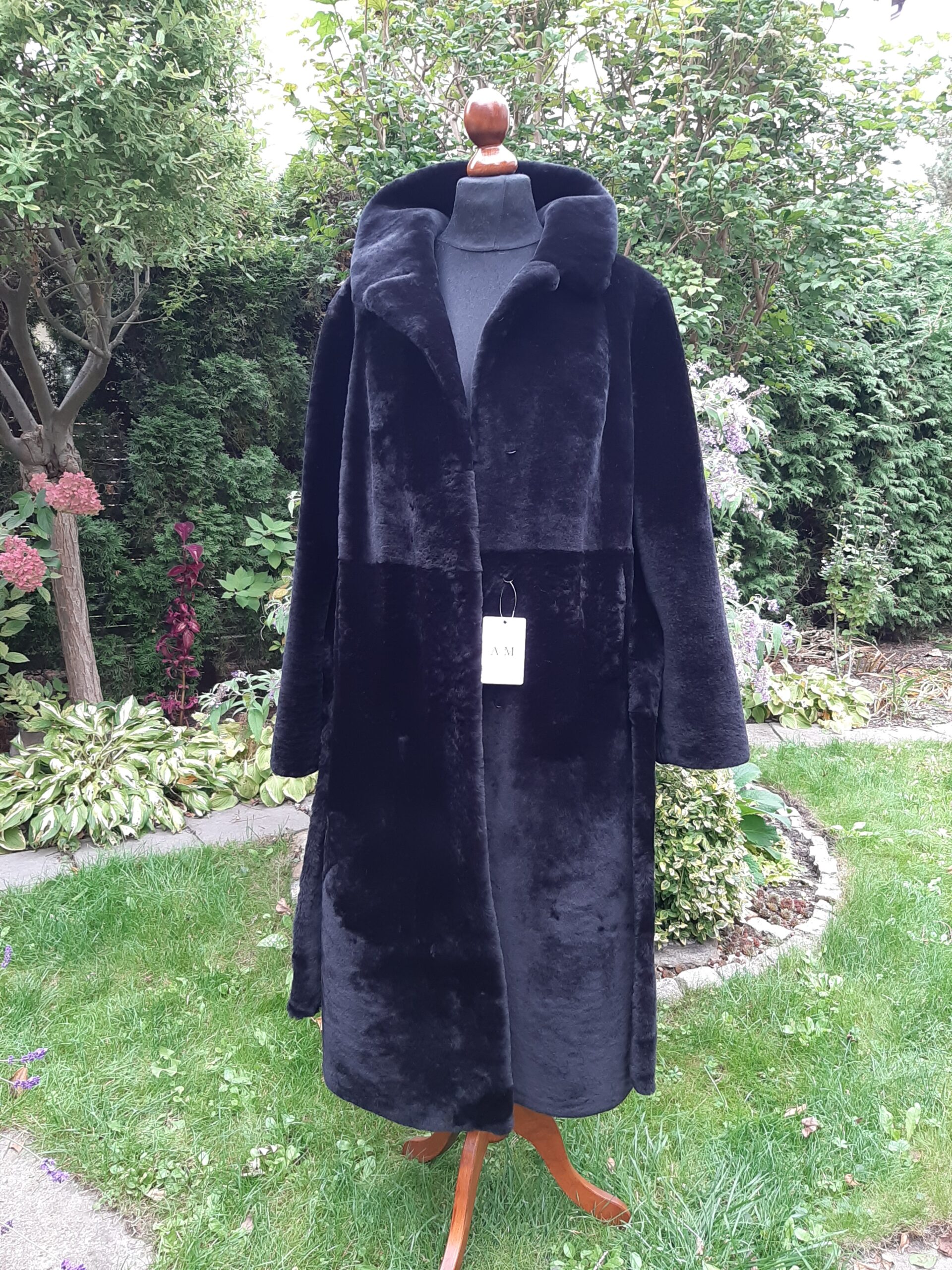 Futro z najwyższej jakości skór jagnięcych z kołnierzem w kolorze czarnym.