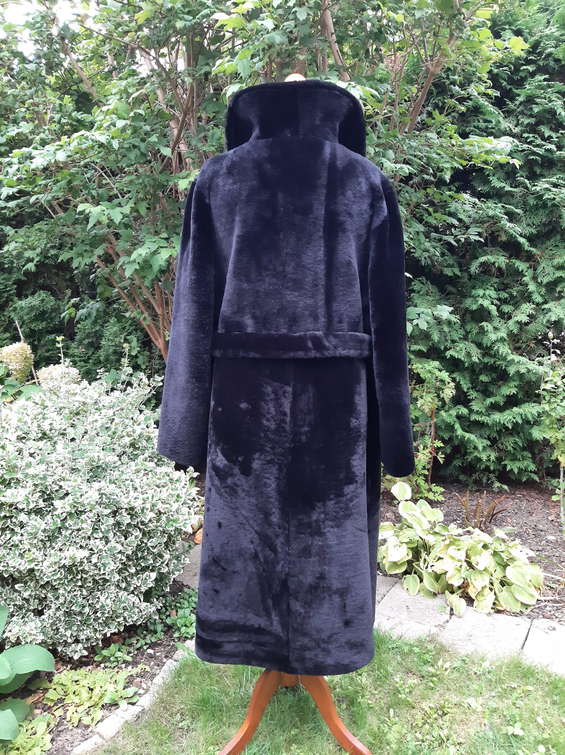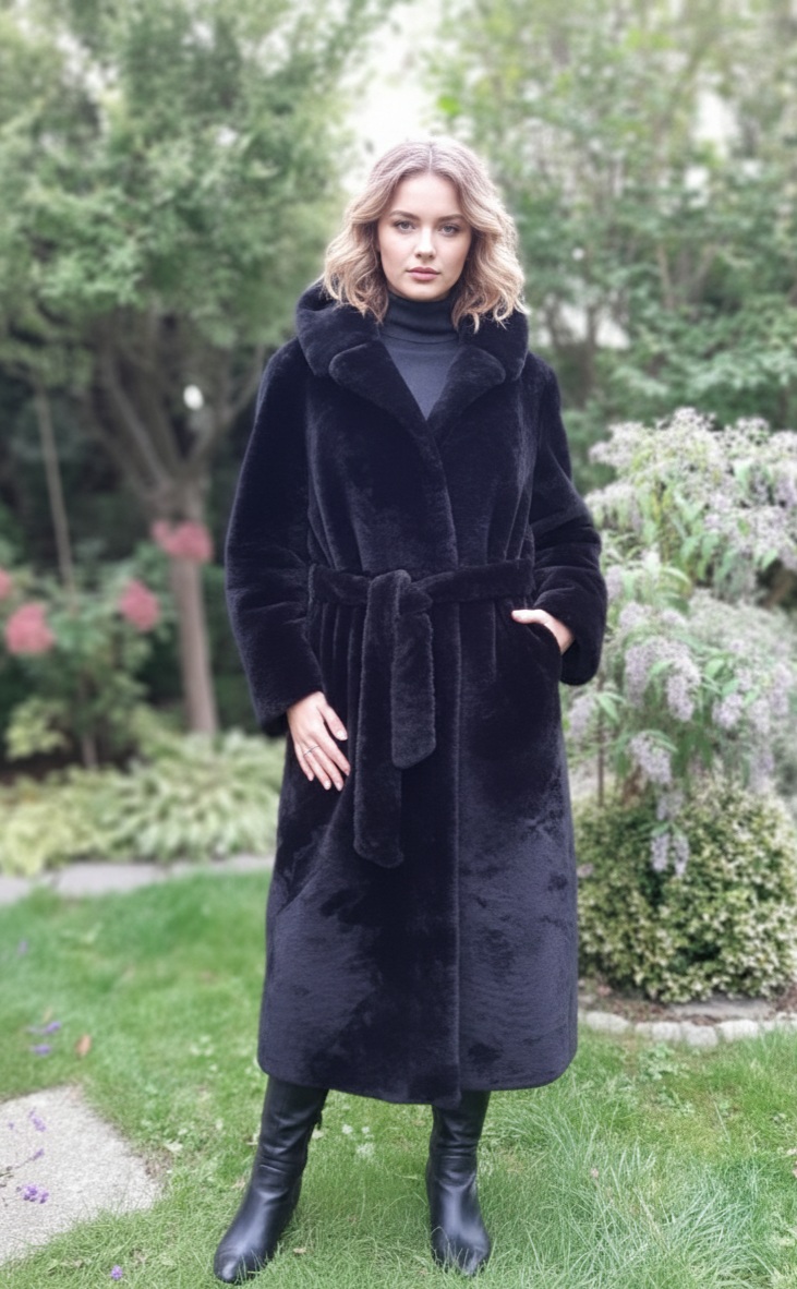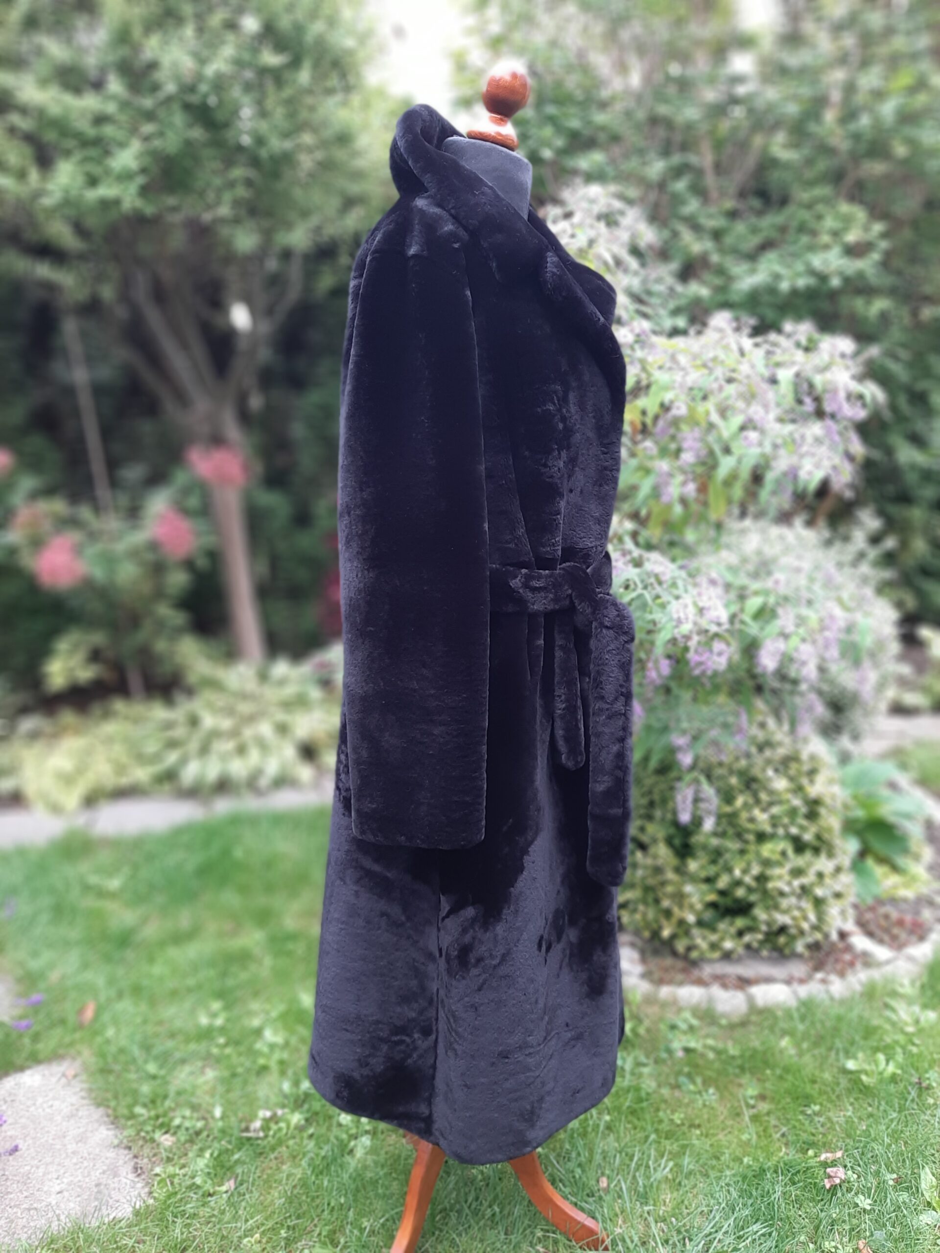 Futro z najwyższej jakości skór jagnięcych z kołnierzem w kolorze czarnym.